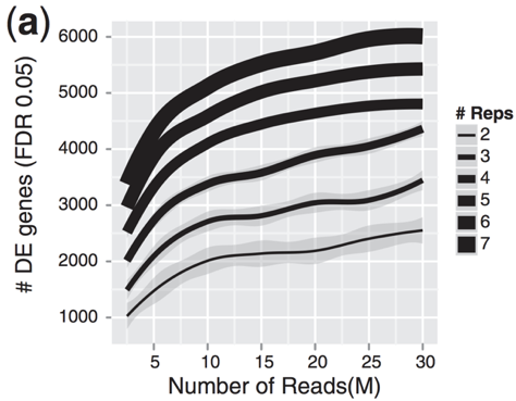 - For differential expression analysis, the more biological replicates, the better the estimates of biological variation and the more precise our estimates of the mean expression levels.