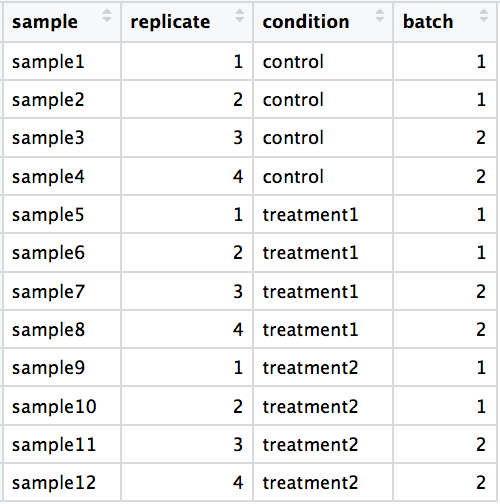 We should always make sure that we have sample names that match between the two files, and that the samples are in the same order. DESeq2 will output an error if this is not the case.